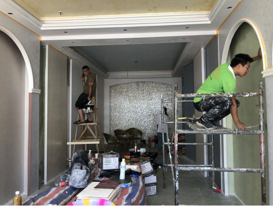 新店以兼具实用性以及艺术观赏性于一体的墙面装饰涂装为主要亮点,具有梦幻珍珠般光泽、柔滑质感,如天鹅绒般浪漫细腻;光泽也会随着不同的光线折射而产生变化,营造出光与影之间的朦胧美感和奢华舒适的艺术涂装效果。